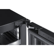 Summit's shallow-depth series of built-in undercounter refrigeration brings full functionality to kitchen islands, wet bars, and other settings with space limitations. The SDHW1532 is a 15" wide single-zone wine cellar sized at 18" deep. It comes in a 34" height to fit standard undercounter spaces. The front-breathing system allows built-in installation, while the fully finished black cabinet also allows freestanding use. Seamless, stylish stainless steel trim blends smoothly into the reversible double pane tempered glass door for an elevated look, with a professional stainless steel handle included. This unit has a sealed rear and right angle cord for a better fit. The fully articulating European hinge design ensures smoother opening. A lock is located in the kickplate for added convenience and security. The inside features stainless steel construction for improved durability and sanitation. White LED lighting in the side walls provides elegant display conditions, with dimmable levels that let you create the perfect presentation. The angled digital control panel enables you to adjust the temperature between 41º and 68ºF to accommodate red, white, or sparkling wine bottles. Our uniquely designed steel shelves in a jet black finish slide out smoothly, with stainless steel front trim to complete the classic look. Fan-forced cooling ensures even temperature distribution and fast temperature recovery. Additional features include an open-door alarm, a high-temperature alarm, and a Sabbath mode setting that turns off some electrical elements for up to 96 hours during observances. The SDHW1532 is ETL-S listed to NSF-7 commercial standards but can also be used in the home. With its deluxe style, user-friendly features, and uniquely shallow depth, this unit offers premium value for a variety of settings. Create a matching set by pairing this with our SDHW1533 beverage center. Alternative 18" deep choices are available in 15", 19", and 24" widths, including outdoor refrigerators, refrigerator drawers, and more. For a panel-ready version, see model SDHW1532PNR. NOTE: The interior can store up to 18 Bordeaux-style bottles. Due to the shallow depth of this unit, we recommend loading the bottles with the cork facing the rear for a better fit. Wider Burgundy bottles will fit on most shelves, but as these may vary more in size, loading capacity will ultimately depend on your specific bottle. You may also remove shelves to accommodate thicker bottles, such as champagne and sparkling wine.