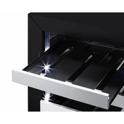 Efficient and attractive presentation with white LED lighting strips located on each side of the cabinet that can be adjusted between three levels of brightness