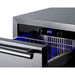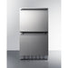 Summit manufactures the industry's largest selection of 18 inch wide refrigeration for under the counter, with a variety of versatile choices for indoor or outdoor kitchens. The ADRD18 is a two-drawer all-refrigerator sized just under 32 inches high for installation under lower ADA compliant counters. The front-breathing design and finished 304 grade stainless steel cabinet allow for built-in or freestanding use. Complete stainless steel construction inside and out offers durability in a professional look. Soft close glides allow you to gently close each drawer with a light touch. The drawers can also be customized with overlay panels to match or accent existing cabinetry design. The stainless steel kickplate and stylish handles complete the look. This unit features a right angle cord and sealed rear for added space spacings. Frost-free operation ensures minimum user maintenance inside the 3.4 cu ft. interior. Each drawer includes a divider to make it easier to separate and organize your storage, with attractive and efficient LED lighting to illuminate the interior. Intuitive digital controls display a temperature readout switchable from Fahrenheit to Celsius to best suit your preference. High/low temperature alarms audibly warn if the interior goes out of the recommended range. Additional features include an open drawer alarm, child lock to secure the controls, sabbath mode for optional observance, and eco-mode for energy savings. Model ADRD18 is ETL-S listed to NSF-7 commercial standards and also meets DOE guidelines for residential use. This unit is also approved for use in outdoor kitchens. Additional 18" wide options are available in front-opening styles as refrigerators, freezers, icemakers, beverage centers, and wine cellars. Browse the complete Summit lineup for more options.