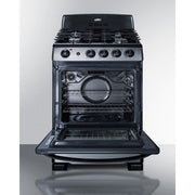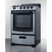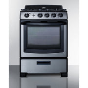 SUMMIT's line of slim-fitting gas ranges made in North America brings quality and value to space-challenged kitchens. The PRO247SS is sized at just 24" wide for an easy fit in smaller kitchen spaces. The front manifold, oven door, and broiler front feature a stainless steel finish, with a black trimmed oven window, handle, and backguard for a modern look. The oven includes a large window, interior light, and easy-grip handle for cooking convenience.This model utilizes electronic spark ignition and features four sealed burners for safer, cleaner cooking. One 12,000 BTU burner offers faster cooking for larger vessels, with two standard 9,500 BTU burners and a smaller 5,000 BTU burner for lower heating needs. Two sets of continuous grates feature a lightweight but durable cast iron design. The control panel includes upfront push-to-turn burner knobs for added safety. Inside, the PRO247SS features a 2.9 cu.ft. porcelain oven. Two slide-out racks include a safety brake system, with four position options to let you accommodate all sizes and shapes. The broiler is located in a lower drop-down compartment with a convenient pocket handle. We include a two-piece broiler pan with lid. The unit ships set for natural gas but includes its own LP kit for aftermarket conversion. With its clean look and unique size, the PRO247SS is the ideal gas range for apartment and small home kitchens. NOTE: This unit replaces model PRO246SS but features an upgraded sealed burner design.