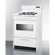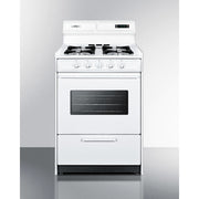 Summit Appliance offers a wide selection of American-made household ranges built for long-lasting durability in space-challenged kitchens. The WNM6307KW is an apartment-sized gas range sized at just 24" wide, with a generous 2.92 cu.ft oven interior that can accommodate large trays. Two adjustable oven racks are included. An oven window and on/off interior light allow you to easily keep watch over your cooking. The broiler is located below the oven in a drop-down compartment. Four open 9000 BTU gas burners accommodate most of your stovetop heating needs, with upfront push-to-turn knobs that let you adjust your cooking without reaching over hot burners. This unit utilizes an electronic ignition system for added safety. The WNM6307KW comes in a classic white finish, with a high backguard that includes a digital clock and timer. This unit has a recessed oven door and is conveniently sized at just 24" deep for a better fit in galley in L-shaped kitchens, where every inch counts. Constructed from porcelain and steel, the WNM6307KW offers lasting durability. We include an anti-tip bracket for added safety. With its classic style and quality construction, Summit's made in the USA cooking line offers reliable cooking for smaller homes. Additional choices are available in 20", 30", and 36" wide fits. This unit ships ready for natural gas connections. To use with propane, add the Kit LP.