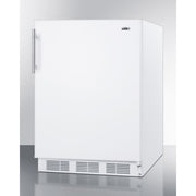 Summit Appliance manufactures a wide range of counter height refrigeration for general purpose storage. The AL650 Series includes freestanding refrigerator-freezers designed for optimum storage conditions and sized for use in settings complying with ADA guidelines. At 32" high, the AL650W is designed for freestanding use in ADA compliant facilities. The 24" footprint offers over 5 cu.ft. of storage capacity. This model features a white exterior finish and a user-reversible door swing. Inside, our unique dual evaporator system separately cools the refrigerator and freezer sections to ensure proper storage temperature. Cycle defrost operation reduces user maintenance in the automatic defrost fresh food section, with static manual defrost operation in the freezer compartment. Door storage provides easy access for tall bottles and small condiments. Additional features include adjustable shelves, a clear crisper, bottle shelf, and automatic interior lighting. The AL650W has long proven itself to have one of the best temperature performance records in the industry. To see additional finish options on this unit, browse the full AL650 Series. For built-in undercounter applications, see the AL650WBI. NOTE: This unit is designed for general purpose, medical, or commercial applications and does not meet DOE energy standards for residential use.