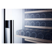 Interior can hold up to 171 standard 750ml Bordeaux style bottles. If using this wine cellar for wider Burgundy style bottles, you can hold up to 128. For champagne, the interior can hold 14 bottles (plus an additional 154 of the standard Bordeaux style)