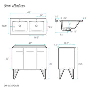 Swiss Madison Annecy 48 in. Black Walnut, Double Basin Bathroom Vanity With Black Ceramic Sink Top - SM-BV224DMB