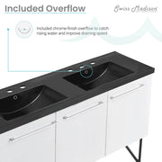 Swiss Madison Annecy 60 in. White, Double Basin Bathroom Vanity With Black, 3-Hole Artificial Stone Sink Top - SM-BV216D-3MB