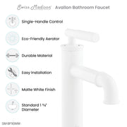Swiss Madison Avallon Single Hole, Single-Handle Sleek, Bathroom Faucet in Matte White - SM-BF90MW