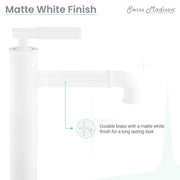Explore the Avallon collection, where rustic charm and contemporary aesthetics merge to create a warm and inviting atmosphere. Discover simplicity and sophistication in one with our single-handle faucets, offering smooth operation and contemporary design. Offered in white with a matte finish.