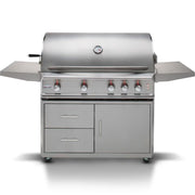 Blaze 4PRO Professional LUX Freestanding 4-Burner Gas Grill, 44-inch provides a high performing luxury grill loaded with features to enhance your grilling experience. The heavy duty 304 stainless steel construction throughout the grill body ensures a long-lasting and durable appliance while the impressive cast stainless steel H-burners offer a commercial quality burner, rated for 18,000 BTU each. The integrated heat zone separators allow you to create distinct grilling zones for direct/indirect grilling that's perfect for everything from steak to ribs while the perforated flame stabilizing grids do a great job to reduce flare-ups. Heavy duty 12mm stainless steel hexagonal grill grates maximize surface area for professional style sear marks while the infrared back burner is rated for 10,000 BTU to provide a wealth of heat for low, slow rotisserie cooking. The integrated interior grill lights illuminate the grill surface for day or night grilling while back-lit knobs enhance the appearance of the grill.