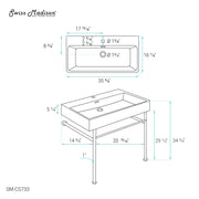 Swiss Madison Carre 36" Ceramic Console Sink White Basin Black Legs - SM-CS733