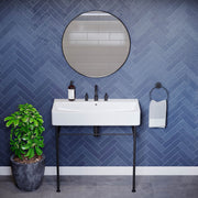 Swiss Madison Carre 36" Console Sink White Basin Black Legs with 8" Widespread Holes - SM-CS733-3