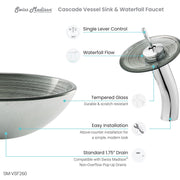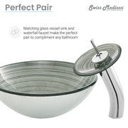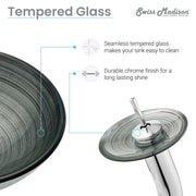 Swiss Madison Cascade 16.5 Glass Vessel Sink with Faucet, Smoky Grey - SM-VSF260