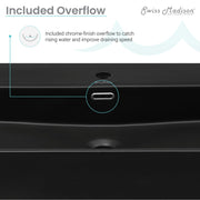 - Overflow: Equipped with an overflow that offers easy installation, spill prevention, and space-saving properties.