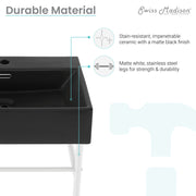 Swiss Madison Claire 24 Ceramic Console Sink Matte Black Basin Matte White Legs - SM-CS791