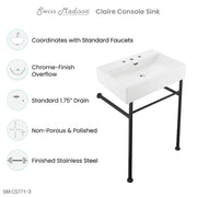 Swiss Madison Claire 24" Console Sink White Basin Black Legs with 8" Widespread Holes - SM-CS771-3