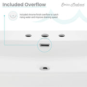 - Overflow: Equipped with an overflow that offers easy installation, spill prevention, and space-saving properties.