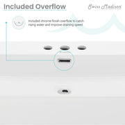 - Overflow: Equipped with an overflow that offers easy installation, spill prevention, and space-saving properties.