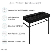 Swiss Madison Carre 36 Ceramic Console Sink Matte Black Basin Black Legs - SM-CS783