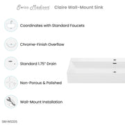 Swiss Madison Claire 40" Rectangle Wall-Mount Bathroom Sink - SM-WS335