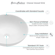 Swiss Madison Classe 16 Ceramic Sink in Shiny White - SM-VS240