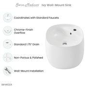 Swiss Madison Ivy 18 in. Ceramic Glossy White Wall Mount Sink - SM-WS324