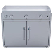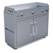 Le Griddle Big Texan Freestanding Dual Fuel Gas Griddle provides a truly innovative option to take your outdoor kitchen to the next level. Featuring a patented Dual Plate System that uses aircraft technology to combine the heat-retaining capabilities of cast iron with the durability and weather resistance of 304 stainless steel, this outdoor griddle provides an exceptional experience that can't be beat by other brands. You'll never have to worry about hot and cold spots again, plus you'll enjoy the capability of high-heat searing that can normally only be found in professional kitchens. There's a reason most of the best restaurants in the world prefer cooking on a flat top griddle grill, and you can bring that caliber of cuisine to your own backyard with Le Griddle. This griddle comes with a smart 304 stainless steel cart with convenient collapsible side shelves and a substantial storage compartment with room for all your griddle accessories, making it the perfect all-in-one griddle.