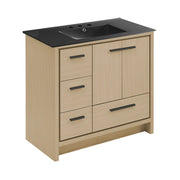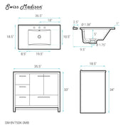 Swiss Madison Virage 36 in. Brown Oak Bathroom Vanity With Black, 3-Hole Ceramic Sink Top - SM-BV750K-3MB