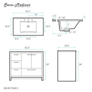 Swiss Madison Virage 36 in. White Bathroom Vanity With White, 3-Hole Ceramic Sink Top - SM-BV750W-3