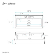 - Dimensions: 32.5"W x 17.5"D x 6"H