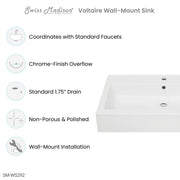 Swiss Madison Voltaire Wide Rectangle Wall-Mount Sink in Shiny White - SM-WS292