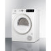 The SLD242W heat pump dryer offers non-vented operation and utilizes a heat pump for an energy efficient performance. It dries up to 17.6 pounds of fabric with 14 dry programs that give give you plenty of options for cottons, delicates, wool, down wear, baby clothes, bedding, easy iron, air refresh, and cool tumble. Specialty functions include a half load option for smaller drying needs, extra dry to lengthen drying time as needed, and anti-crease for intermittent drying to ensure clothes stay wrinkle-free until they can be removed from the dryer. The pull-out condensation tank makes removing collected moisture easy. We include a condensation discharge hose as an alternative to the condensation tank for added convenience. A net filter and heat pump filter help to ensure a cleaner performance. A contained dryer basket located on the door lets users dry small items (including slippers or children's shoes) without them being noisily spun inside the drum. An automatic interior drum light makes it easy to load and unload fabrics, while a child lock prevents unwanted cycle or function changes. (Note: This unit should be installed with 4" side clearance, 4" top clearance, and 2" rear clearance.)